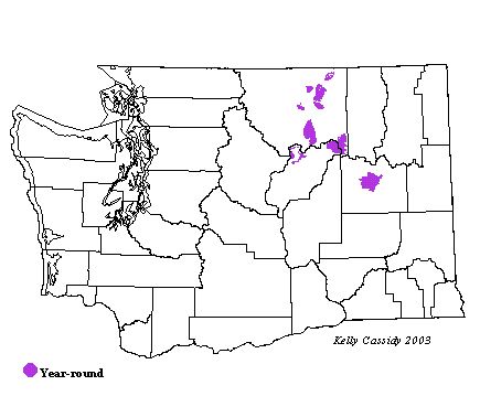 The Columbian subspecies historically ranged from southern British Columbia, along the eastern slope of the Cascades south to California, and east to Colorado and Utah. In Washington, they currently remain in only eight isolated populations in Douglas, Lincoln, and Okanogan Counties. The areas with the largest subpopulations are Dyer Hill in Douglas County, Swanson Lakes in Lincoln County, Tunk Valley, and Nespelem in Okanogan County.