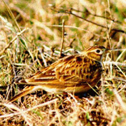 Flocks form in late July and early August and last until early spring. Sky Larks walk rather than hop, and forage as they walk. They are monogamous, and residents maintain pair bonds throughout the winter. The Sky Lark is famous for its spectacular aerial display songs, used to attract mates and defend nesting territories. Singing males fly in a steep spiral as high as 150-300 feet, circle for several minutes as they sing, and then spiral slowly back to the ground. The Sky Lark's song is a long trill, a series of high, liquid rolling notes that may include mimicry of other species.