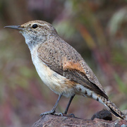 Rock Wrens use their long bills to probe into narrow crevices and find prey. They are often seen bouncing up and down among the rocks as they forage. Males often sing from rock promontories.