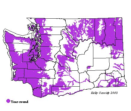 Western Screech-Owls are fairly common at low to moderate elevations both east and west of the Cascades. They are absent from most of the central Columbia basin. They can be difficult to observe but will respond to playback tapes. They can be found in Lincoln and Schmitz Parks in West Seattle (King County), at Chuckanut Mountain (Whatcom County), at Rainbow Falls State Park (Lewis County), at Wenas Creek (Yakima County), and at Fish Hook Park (Walla Walla County).